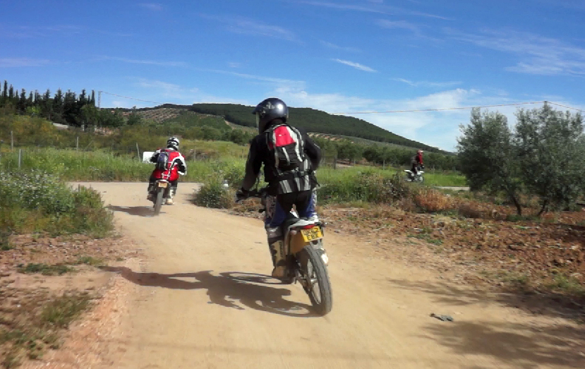 The accommodation was ideal and the farmhouse setting with gardens and a pool were perfect. On the first afternoon Andy took us get kitted out with off road riding gear and select our machines. There was a good selection of kit and the AJP bikes were on display. Vic and Alan opted to take the 200cc machines with the lower seat height and Sandy took a 250cc bike (with slightly lowered suspension) Then it was back to the pool for a beer and a chat before Dave dropped us off in town so that we could sample the local eating places.